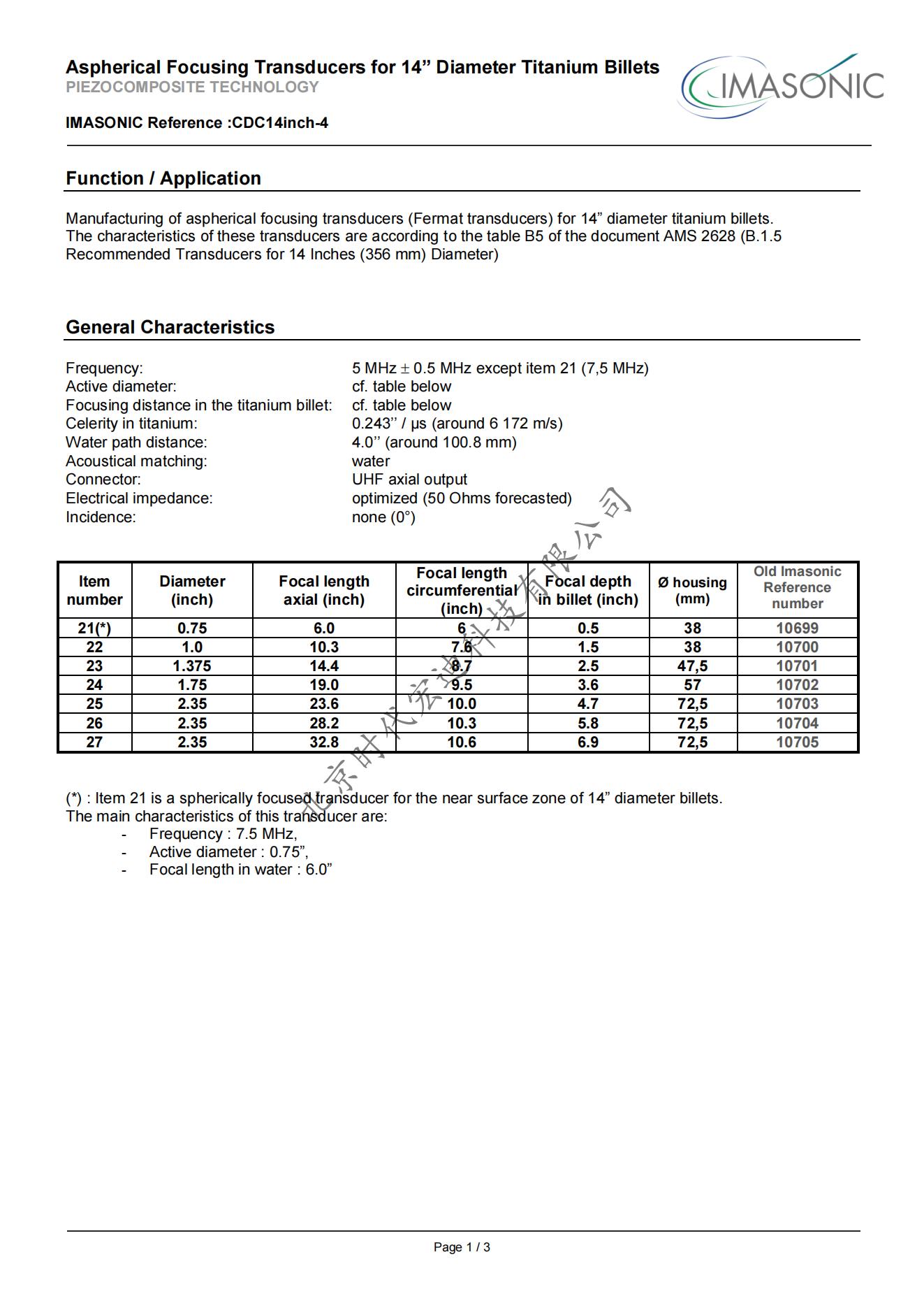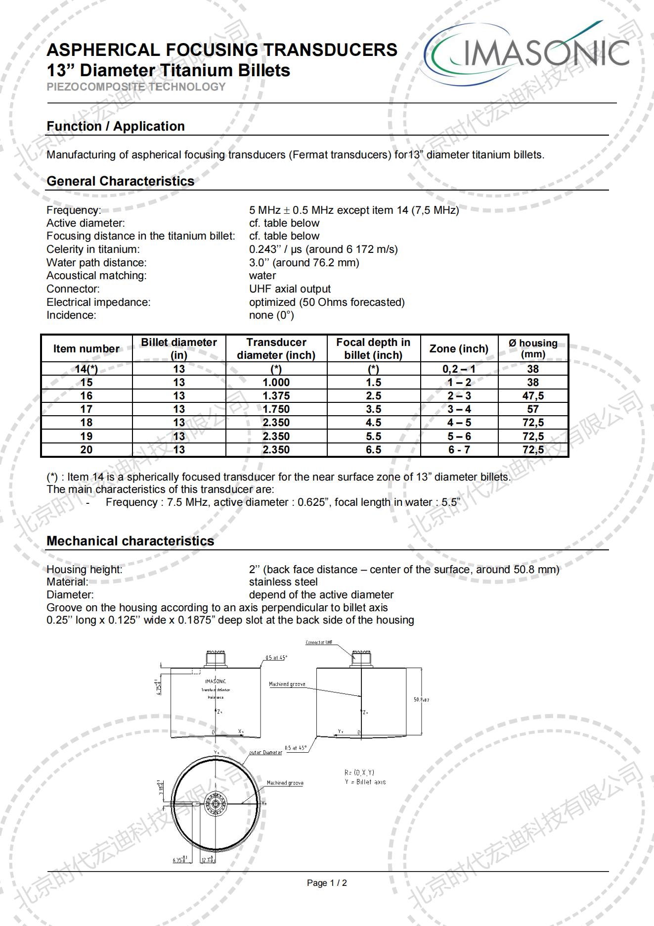 法国IMASONIC 水浸FERMAT探头 用于航空钛合金、锻件、棒材检测